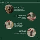 - Vask håret som normalt og anvend Damage Remedy Restructuring Conditioner i dit hår.
