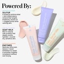 Cleanser: Aqua/Water/Eau, Stearic Acid, Sodium Cocoyl Glycinate, Lauramidopropyl Betaine, Glycerin, Hydroxypropyl Starch Phosphate, Cetearyl Phosphate, Xylitylglucoside, Dimethicone PEG-8 Meadowfoamate, Anhydroxylitol, Xylitol, Leuconostoc/Radish Root Ferment Filtrate, Bromelain, Papain, Lactobacillus/Pumpkin Fruit Ferment Filtrate, Lauramide DIPA, Aloe Barbadensis Leaf Juice Powder, Lactic Acid, Glycolic Acid, Citrus Aurantium Bergamia (Bergamot) Fruit Oil, Aniba Rosaeodora (Rosewood) Wood Extract, Citrus Aurantium Dulcis (Orange) Peel Oil, Glucose, Pelargonium Graveolens Flower Oil, Citral, Benzyl Benzoate, Benzyl Alcohol, Sodium Hydroxide, Limonene, Chlorphenesin, Linalool, Citronellol, Maltodextrin, Geraniol, CI 75810 (Chlorophyllin-Copper Complex)